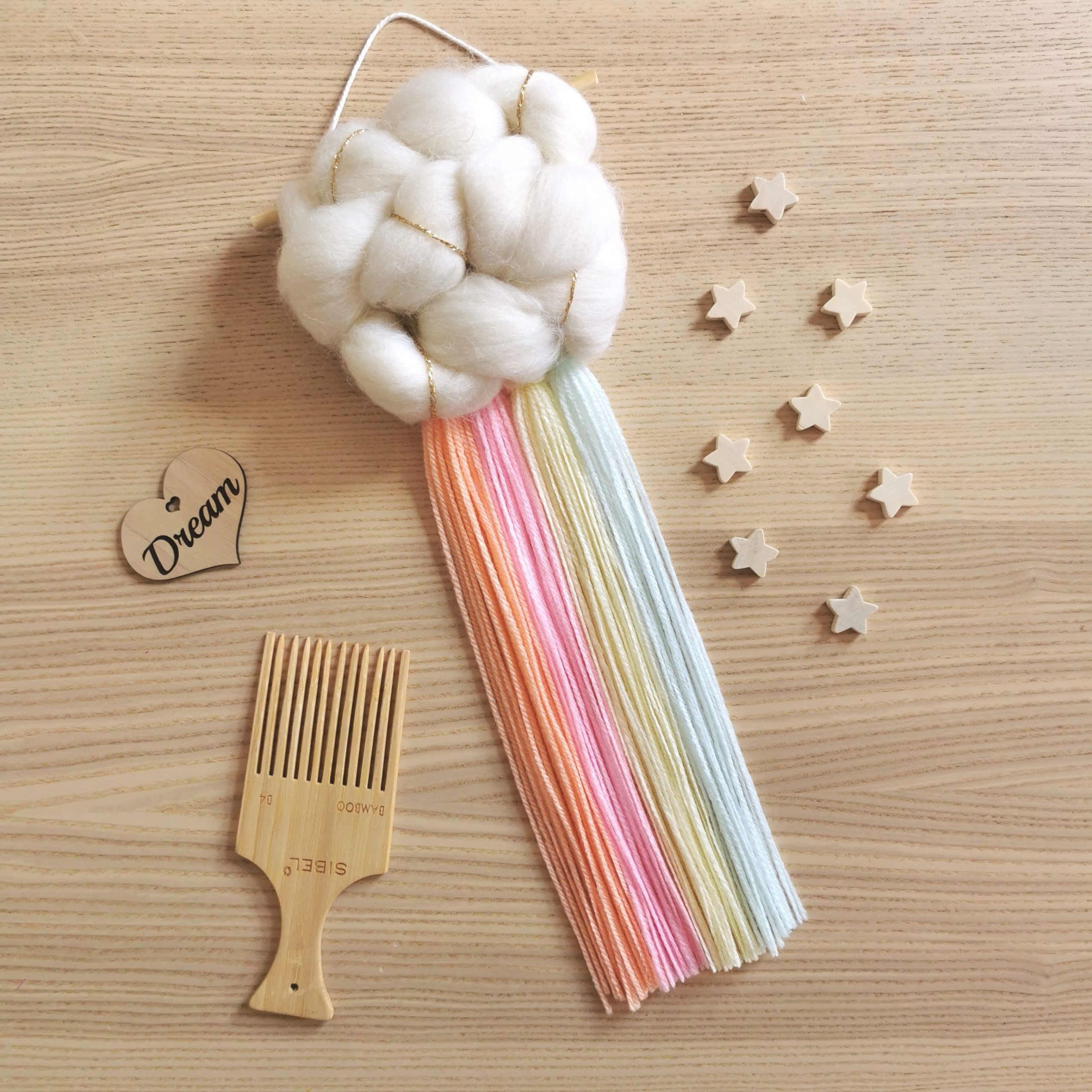 The cloud is created using beautiful merino roving