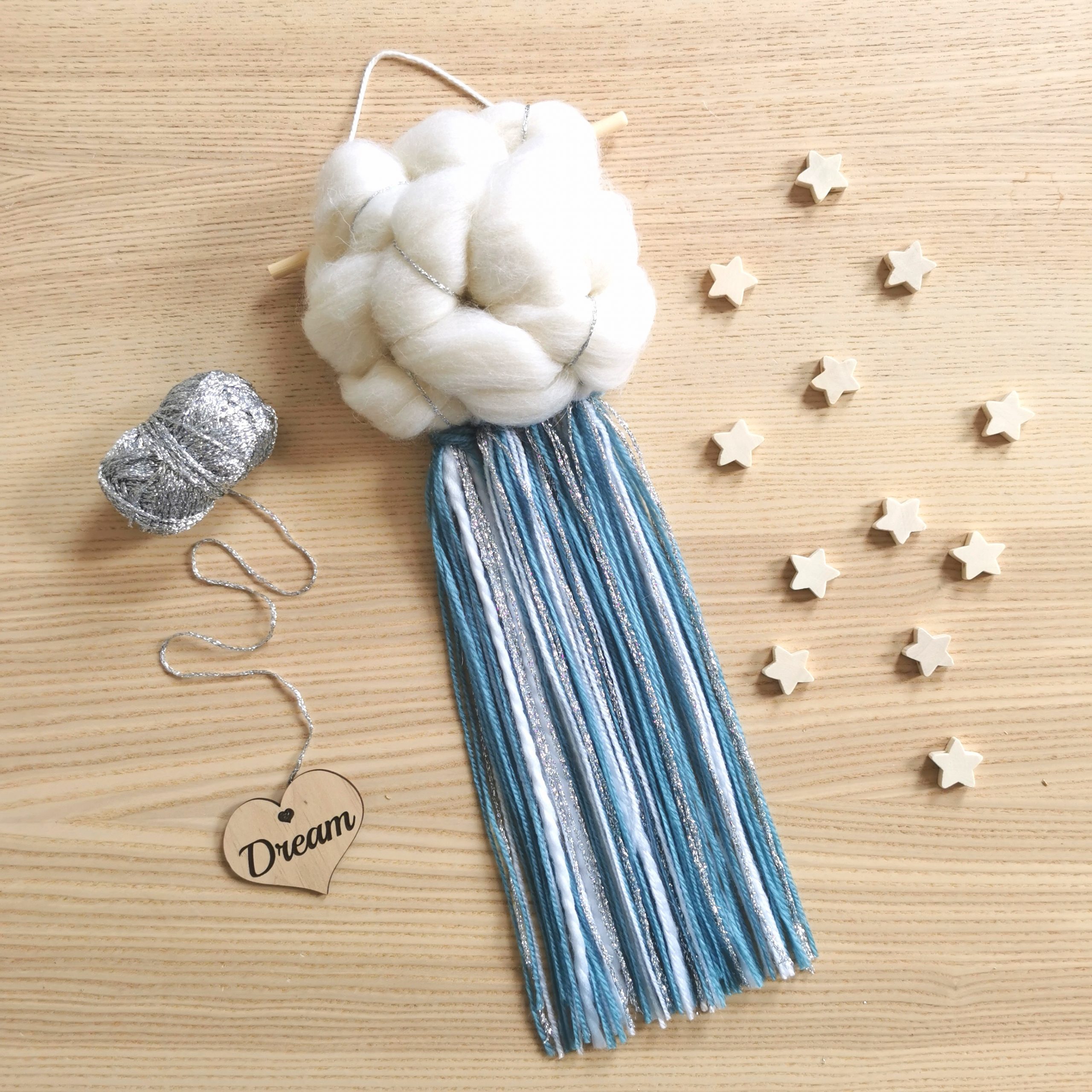 The cloud is created using beautiful merino roving